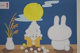 自分からすすんで挨拶をしてくれた子どもには、生徒会本部のメンバーが黄色と白色の「シール」を配布し、学級事に秋にちなんだお月見のお団子や名月にシールを貼りつけて図柄を完成させる取組です。