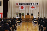 卒業生46名は、9年間の義務教育期間を終え、学び舎を巣立ち、新しい旅立ちを迎えました。