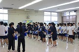 今日、体育祭の予行練習が行われました。残念ながら、グラウンドは雨のため使用できずに、屋内での練習となりました。
